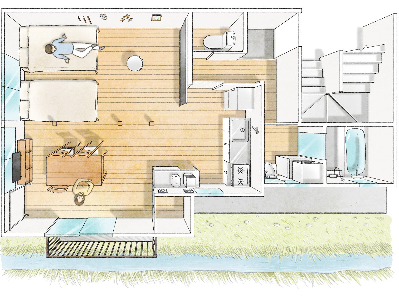 伊豆の清流「冷川」のほとりに佇む小さなアパートの一室を暮らしやすいようにリノベーションしました。