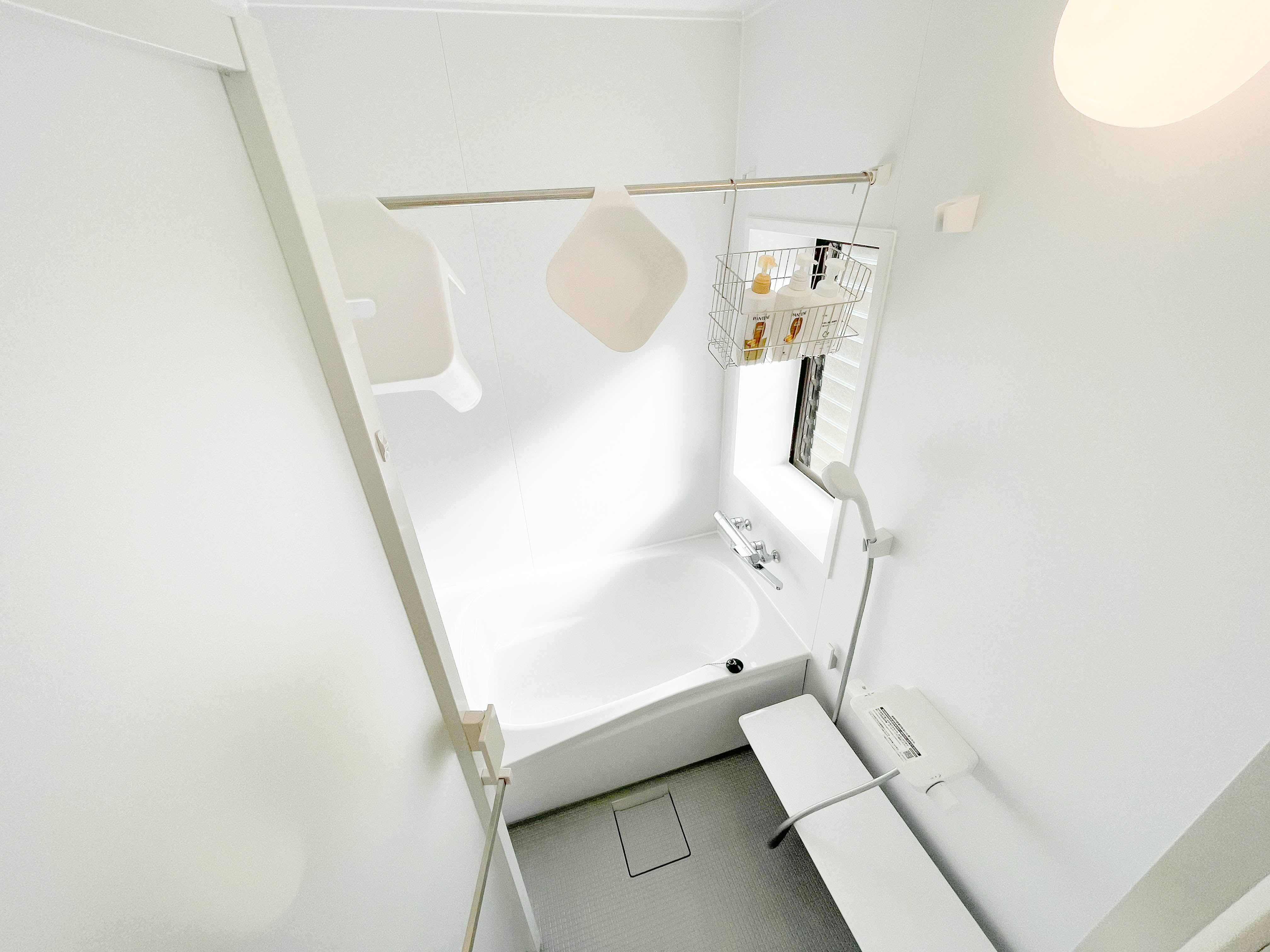2023年にリフォームしたばかりの清潔感溢れるユニットバスです。窓をあけると雄大な自然と川の音を聴きながら入浴することが可能です。